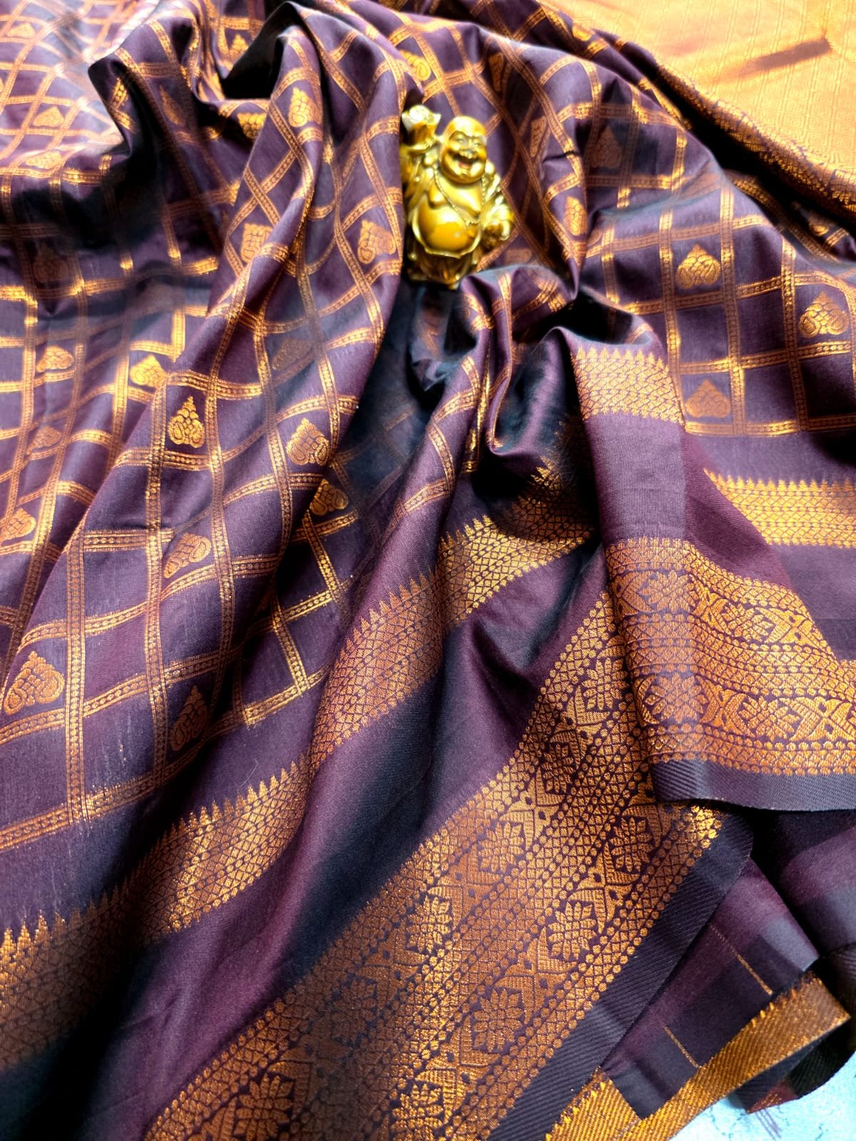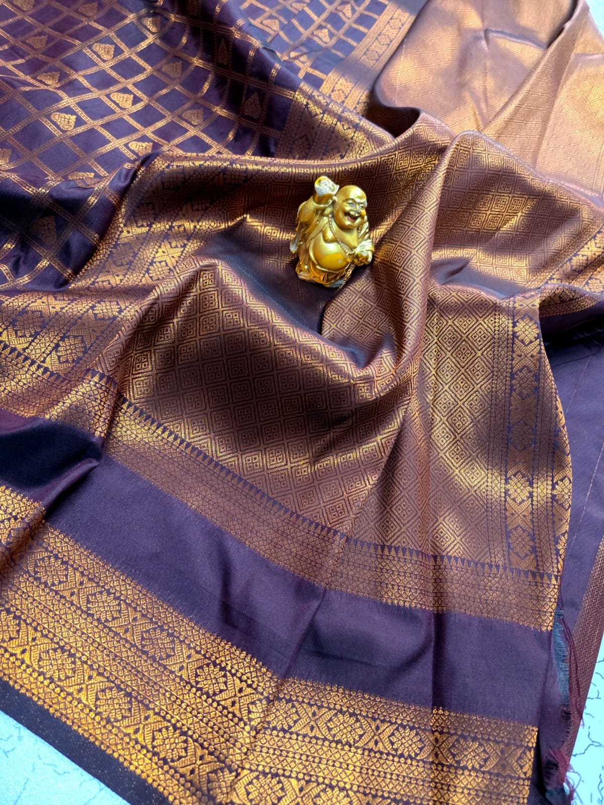 Copper bentex Kanchi silk saree with traditional craftsmanship