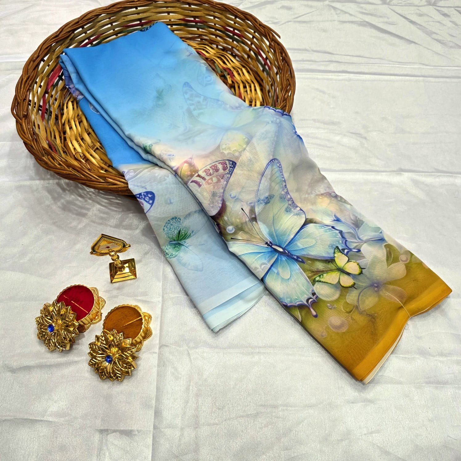 Elegant butterfly digital printed pallu