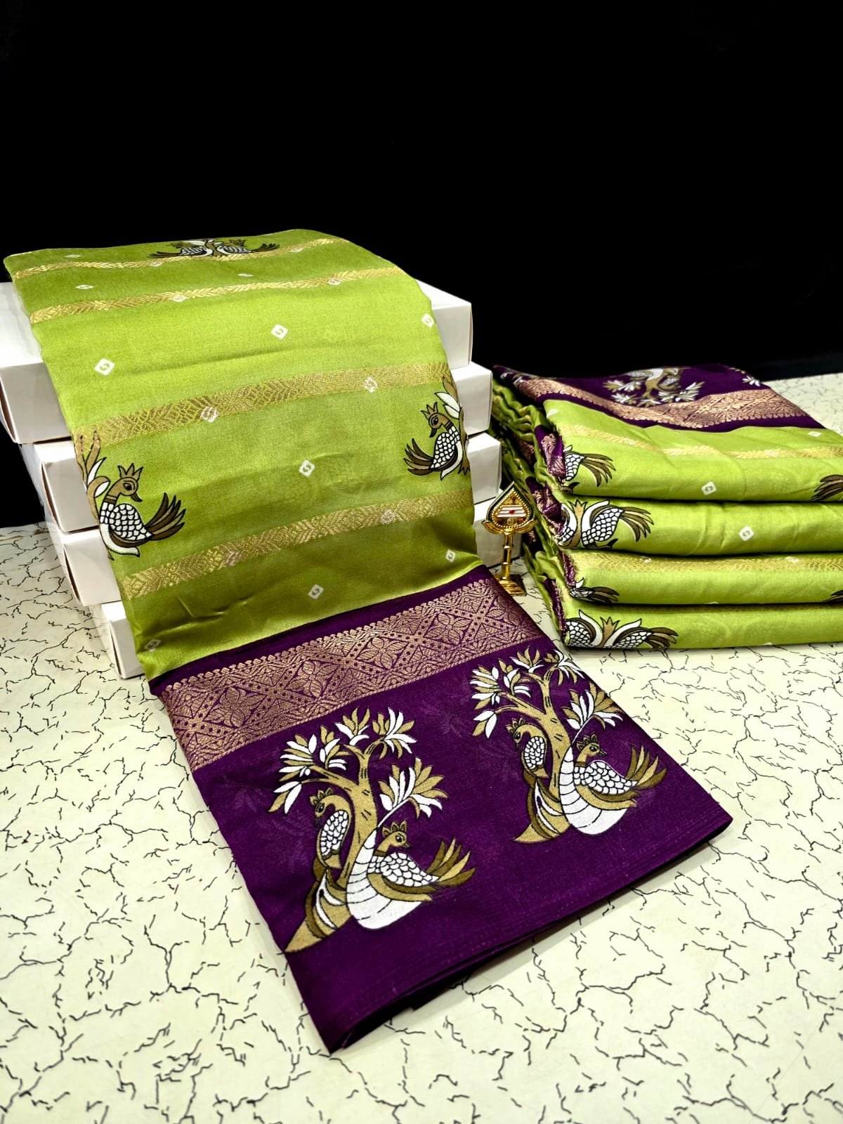 Be the first to review “Dola Silk Double Peacock Design with Zari Border – Green”