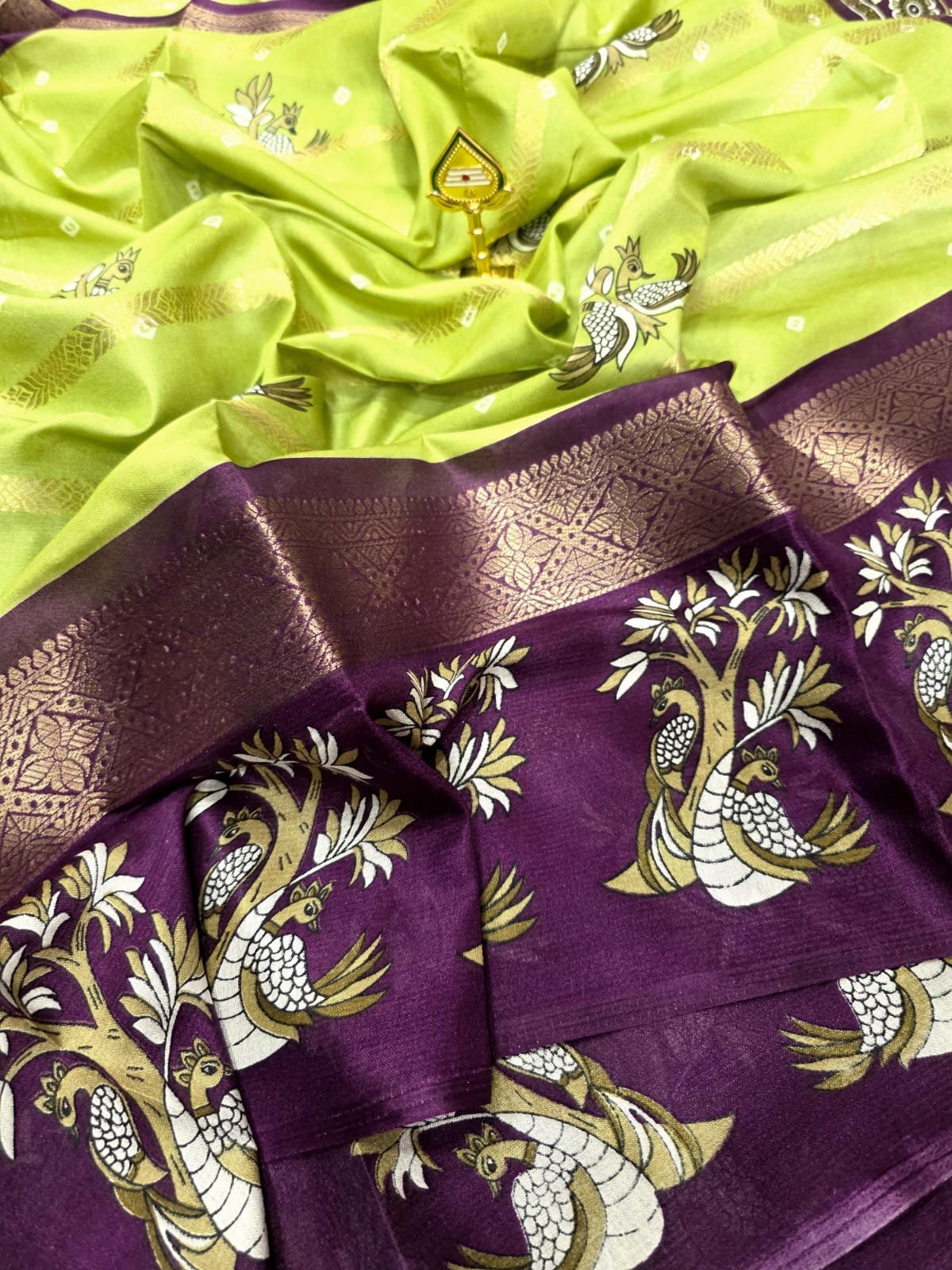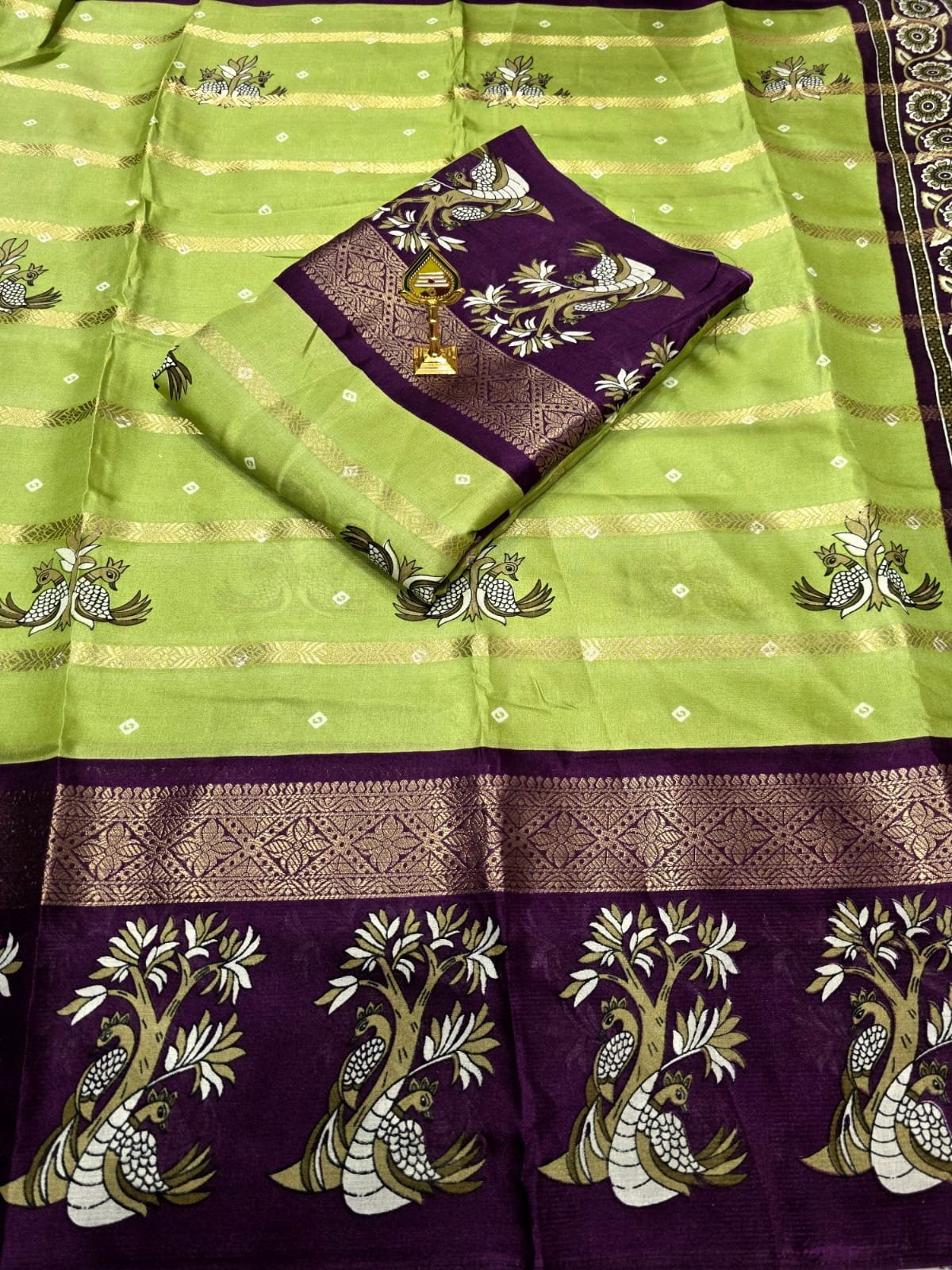 Dola Silk Double Peacock Design with Zari Border – Green