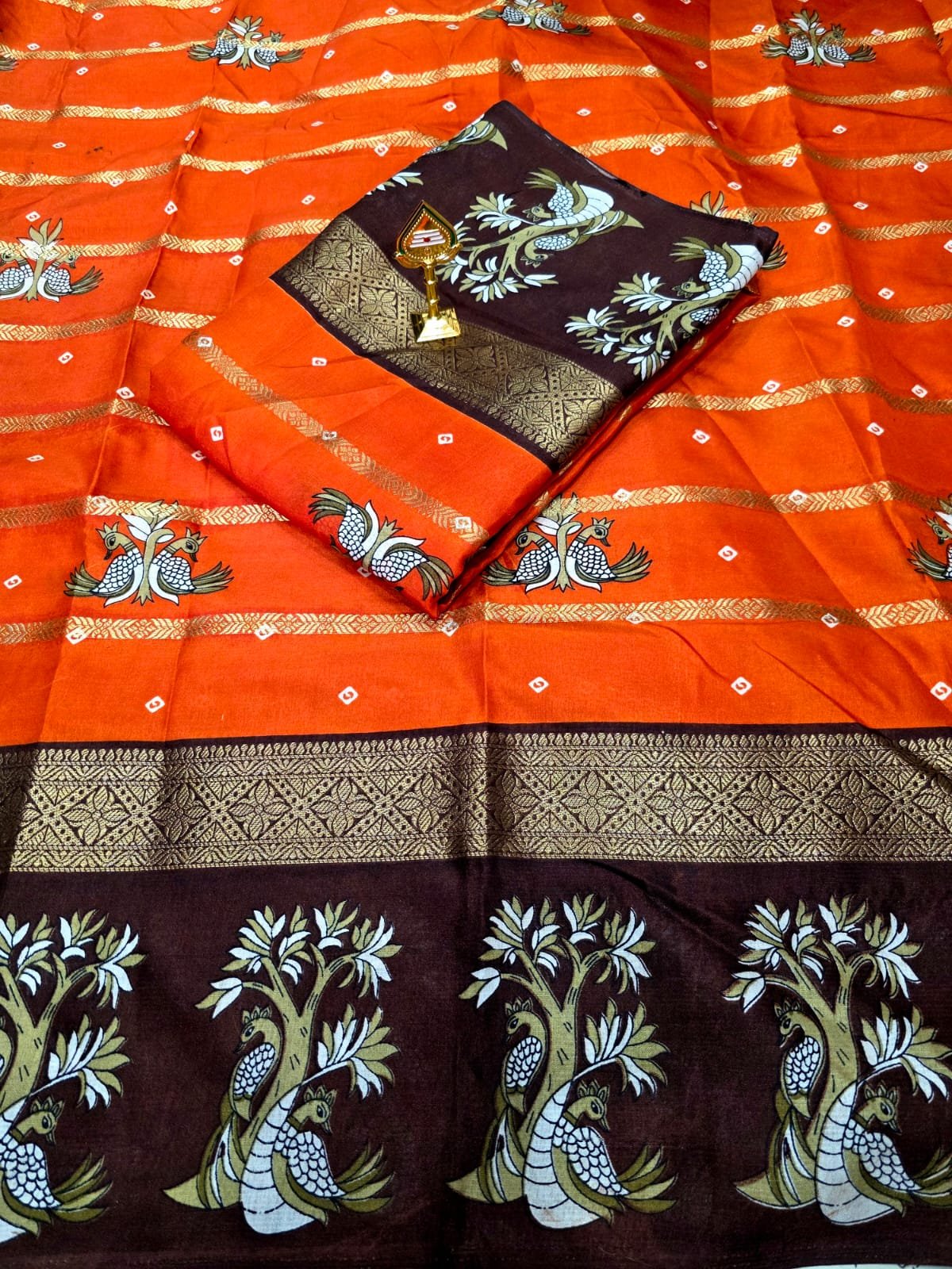 Elegant double peacock motifs beautifully woven across the body