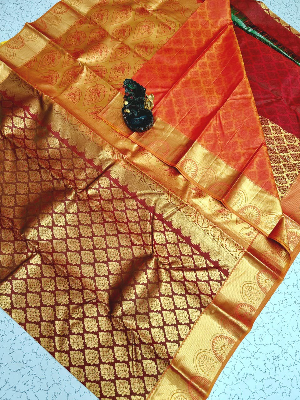 🪔 Border: Grand traditional golden zari border with beautiful temple-inspired patterns