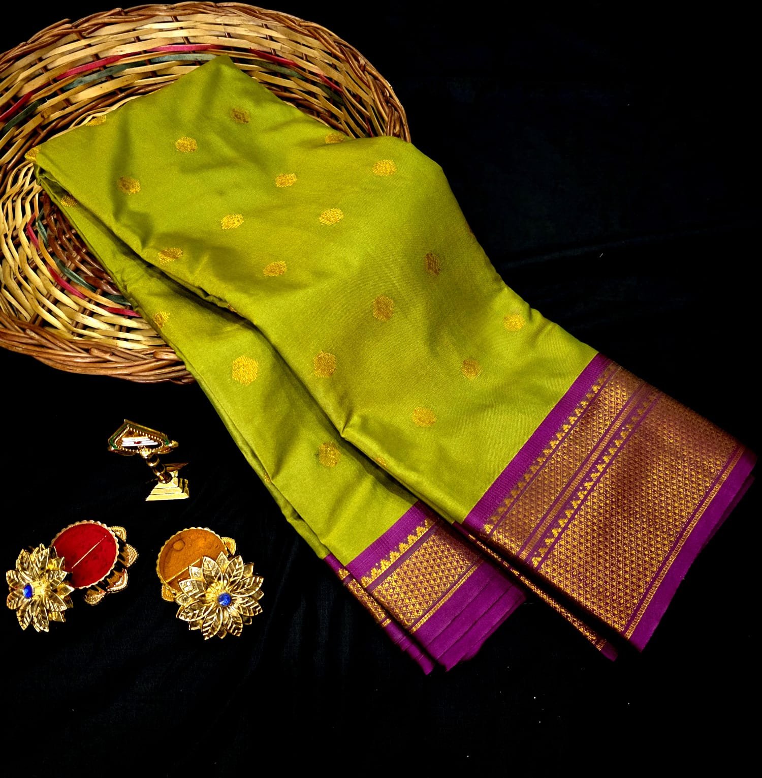 Beautiful gold zari butti motifs all over the body