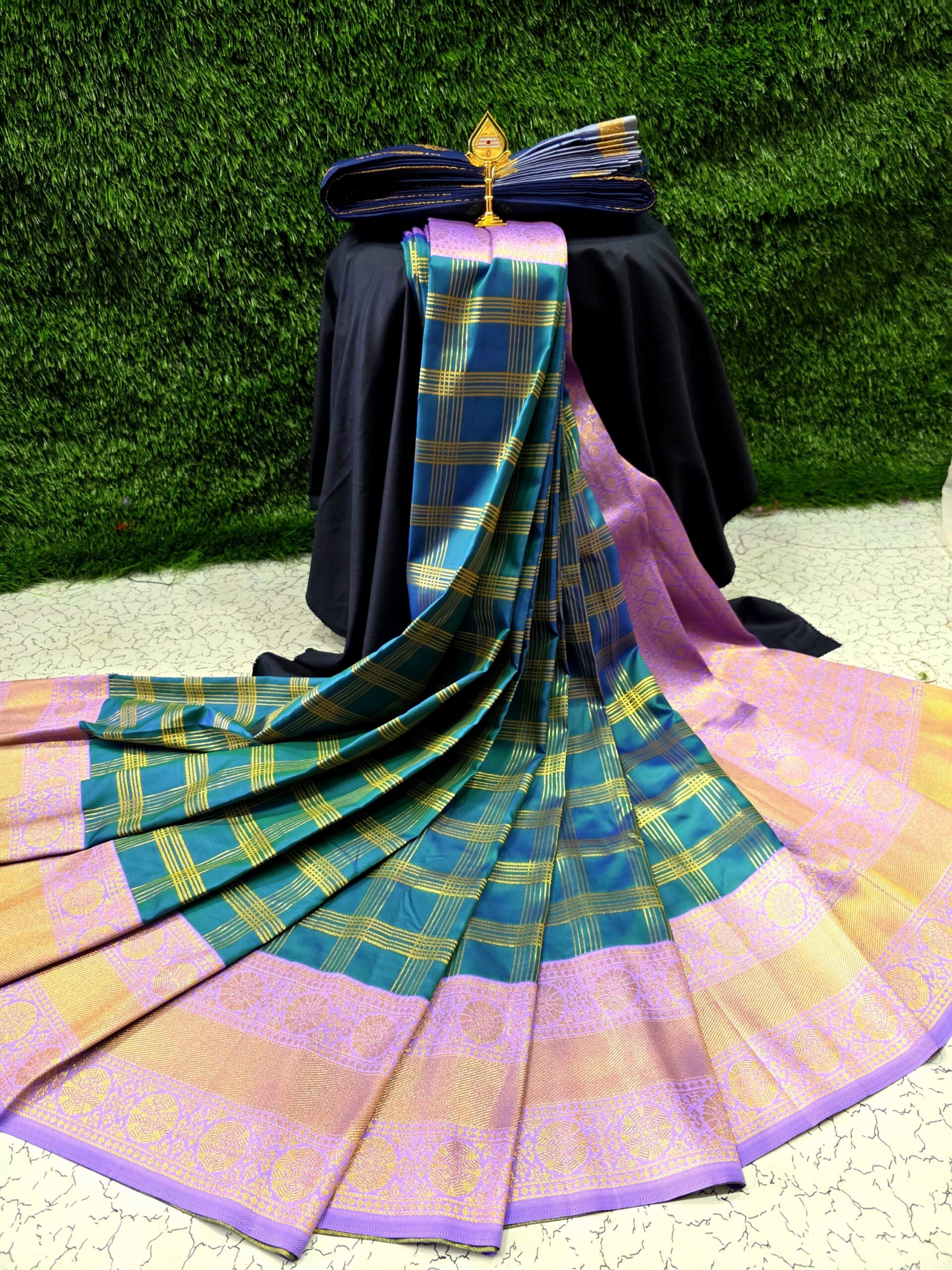 Elegant zari woven checks on the body