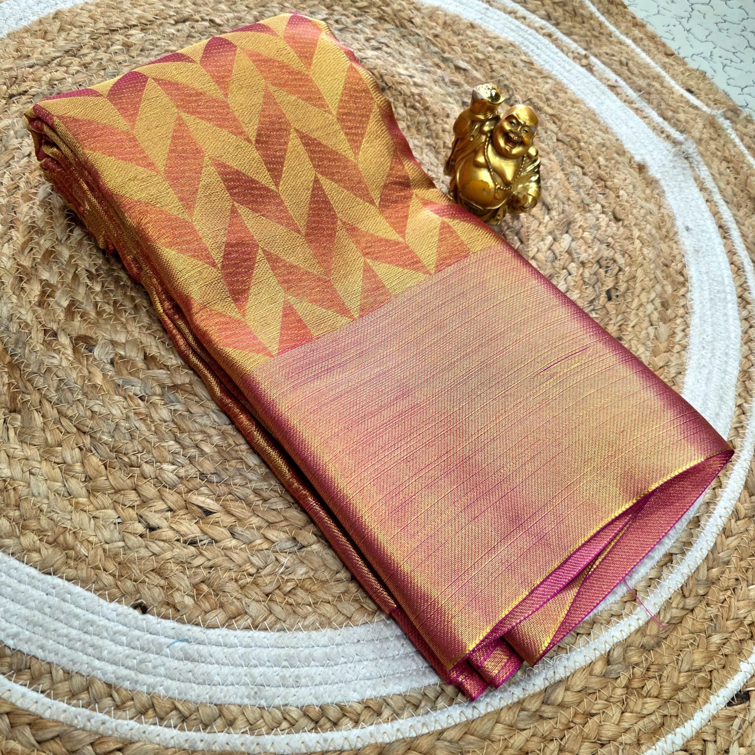 • Elegant rustic orange and gold tone inspired by Jyothika’s timeless traditional style