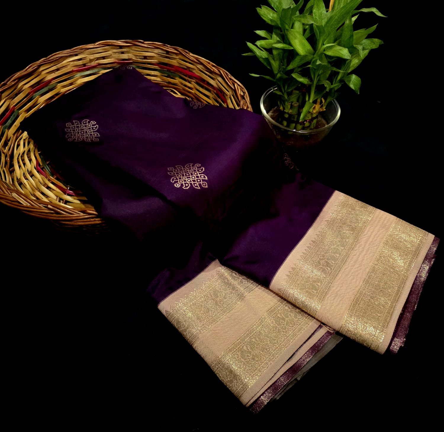Soft semi-silk saree featuring traditional kolam-inspired designs